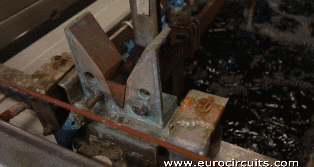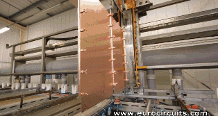 将PCB用夹子夹住,将铜电镀上去。之前提到,为了保证孔位有足够好的导电性,孔壁上电镀的铜膜必须要有25微米的厚度,所以整套系统将会由电脑自动控制,保证其精确性。