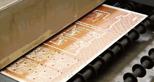 接下来会将外层的PCB布局转移到铜箔上,过程和之前的内层芯板PCB布局转移原理差不多,都是利用影印的胶片和感光膜将PCB布局转移到铜箔上,唯一的不同是将会采用正片做板。